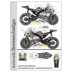 Decals for recreating the Yamaha YZR-M1 2010 that raced in 2010 with Valentino Rossi at Laguna Seca, (special livery)